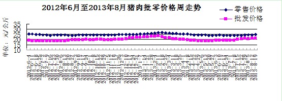 猪肉批零均价继续稳中略涨。从5月中下旬开始,我国活猪价格逐步走出春节后的亏损状态,到7月下旬全国猪市逐渐扭亏为盈。与此同时,我省猪肉价格一直维持稳中略涨状态,8月19日我省猪肉批零均价比5月20日分别累计上涨11.36%和3.43%。上周,猪肉批发均价21.07元/公斤,上涨1.35%;猪肉零售均价24.73元/公斤,上涨0.45%。其中,鲜猪肉零售均价24.18元/公斤,上涨0.5%;精瘦肉零售均价27.22元/公斤,上涨0.55%;五花肉零售均价22.8元/公斤,上涨0.31%。上周,鲜牛肉批发均价59.36元/公斤,下降0.25%;鲜羊肉批发均价57元/公斤,下降0.42%。立秋之后,天气逐渐变凉,学校陆续开学,将扩大对猪肉消费的需求,预计近期猪肉价格继续维持稳中略涨状态。