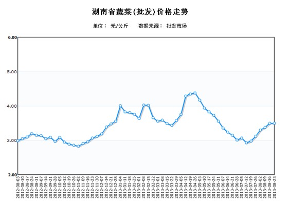 - [湖南商务预报]上周我省蔬菜价格小幅上涨 (2013/8/20 15:29:33)