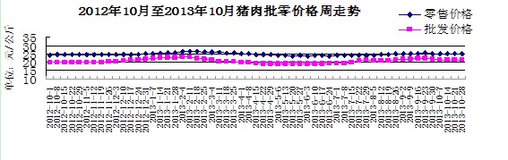 猪肉批零均价基本稳定。上周,我省猪肉批发均价21.19元/公斤,下降0.33%;猪肉零售均价25.22元/公斤,上涨0.04%。猪肉零售、批发价差额继续扩大,由前一周的3.95元/公斤,扩大到4.03元/公斤。其中,鲜猪肉零售均价24.66元/公斤,持平;精瘦肉零售均价27.79元/公斤,上涨0.04%;五花肉零售均价23.22元/公斤,上涨0.09%。上周,鲜牛肉批发均价63.26元/公斤,上涨1.41%;鲜羊肉批发均价58.9元/公斤,持平。目前全国猪价基本稳定,猪肉需求旺季还未到来,猪肉价格上涨动力不足。预计,随着天气渐冷,居民开始腌制腊肉,部分地区猪肉价格上涨将带动整体价格小幅上涨。