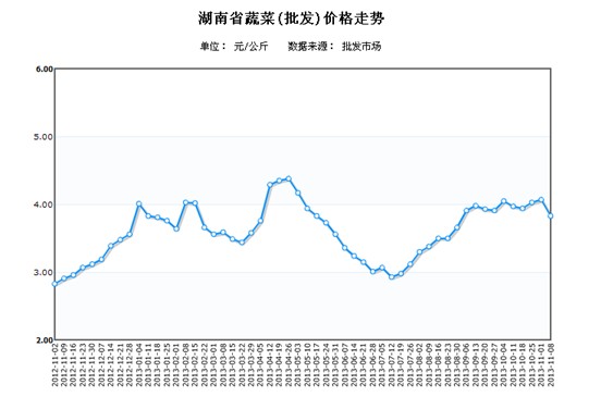 - [湖南商务预报]上周我省蔬菜批发均价涨幅缩小 (2013/11/5 10:14:15)