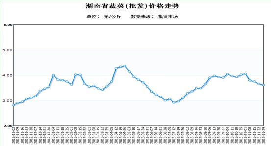 - [湖南商务预报]我省蔬菜批发均价连降3周 (2013/11/27 14:03:46)