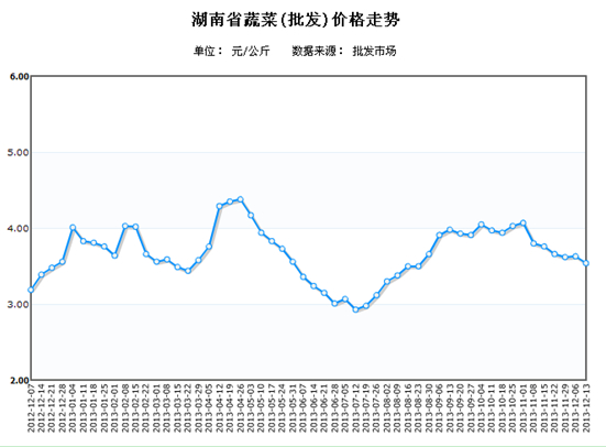 - [湖南商务预报]上周我省蔬菜批发均价止跌回升 (2013/12/10 10:08:54)