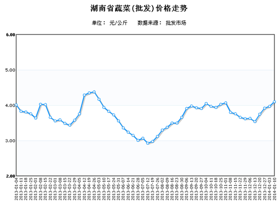- [湖南商务预报]2014年第一周我省蔬菜批发均价基本稳定 (2014/1/9 16:09:36)