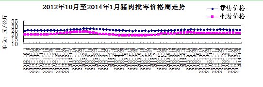 猪肉批发均价略降,零售均价略涨。上周,我省猪肉批发均价21.31元/公斤,下降0.7%;猪肉零售均价25.26元/公斤,上涨0.68%。其中,鲜猪肉零售均价24.72元/公斤,上涨1.44%;精瘦肉零售均价27.71元/公斤,上涨0.09%;五花肉零售均价23.34元/公斤,上涨0.56%。上周,鲜牛肉批发均价64.83元/公斤,上涨1.25%;鲜羊肉批发均价57.88元/公斤,下降1.06%春节临近,肉类消费和供应同时进入旺季,货源充足造成猪肉消费旺季价格涨不起来。目前生猪存栏量和能繁母猪存栏量仍处于较高水平,后期生猪供应仍将充足,预计后期猪肉价格以稳为主,涨跌两难。