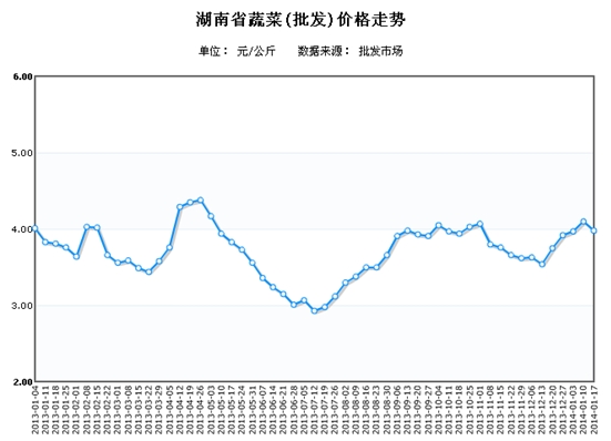 - [湖南商务预报]2014年第一周我省蔬菜批发均价基本稳定 (2014/1/9 16:09:36)