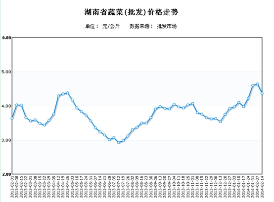 - [湖南商务预报]2月5日-11日湖南蔬菜批发均价小幅上涨 (2014/2/12 11:19:12)