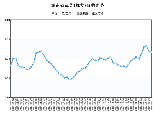 - [湖南商务预报]2月5日-11日湖南蔬菜批发均价小幅上涨 (2014/2/12 11:19:12)