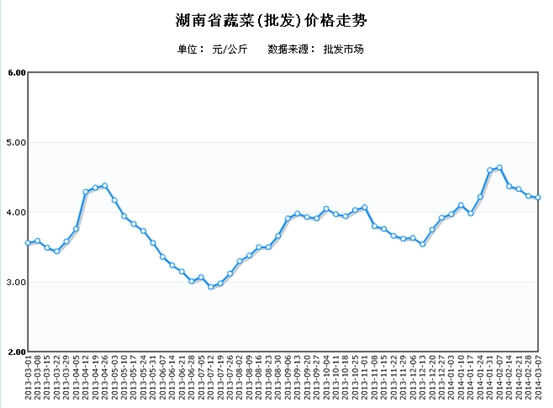 - [湖南商务预报]湖南蔬菜批发均价连降三周 (2014/3/5 8:54:40)