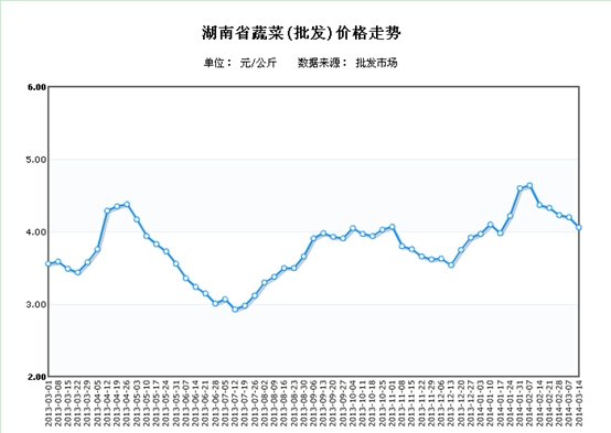 - [湖南商务预报]湖南蔬菜批发均价连降三周 (2014/3/5 8:54:40)