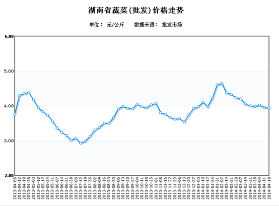 - [湖南商务预报]4月9日-15日我省蔬菜价格小幅下降 (2014/4/15 16:44:36)