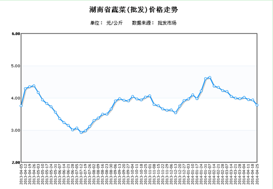- [湖南商务预报]本周我省蔬菜批发均价继续下降 (2014/4/22 16:39:01)
