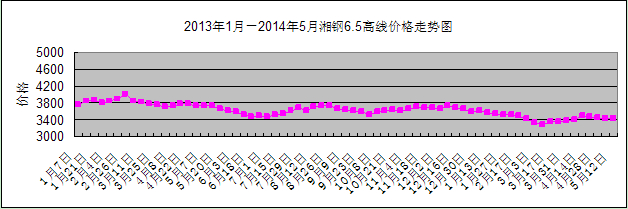 建筑钢材:五一节后建筑钢材市场价格主要以下跌为主。截至05月13日,Φ6.5mm高速线材均价3420元(每吨,下同),Φ25mm二级螺纹钢均价3440元,分别较上上周下跌10元和20元。目前,长沙市场建筑钢材库存总量约20.5万吨,较上上周增加0.4万吨,其中螺纹钢和线材库存量分别为15万吨和5.5万吨,分别较上上周增加0.3万吨和0.1万吨。市场成交基本正常,库存量10000多吨的商家日均成交量约1000吨以内,市场需求中中间需求较少,主要表现在终端采购上。当前正处于建筑钢材消费旺季,加之国家加大铁路建设固定资产投资力度,将有力促进后期钢材市场需求释放。预计下周建筑钢材市场价格将以小幅波动为主。
