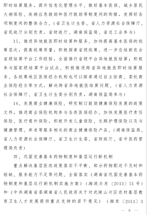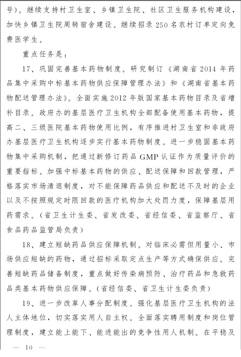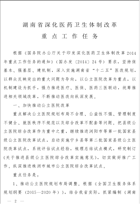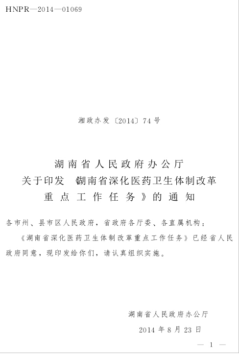 关于印发《湖南省深化卫生体制改革重点工作任务》的通知