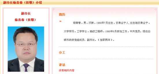 原标题:杨青春任甘肃省白银市副市长