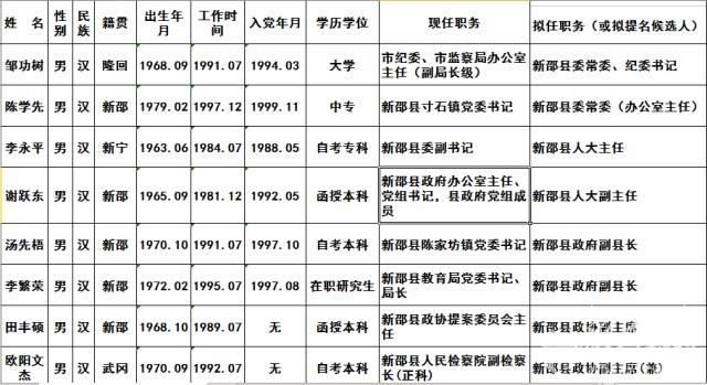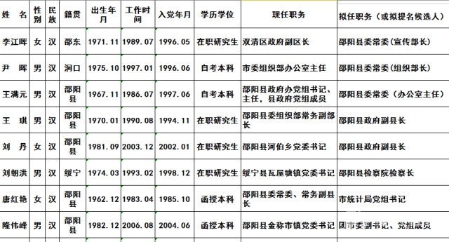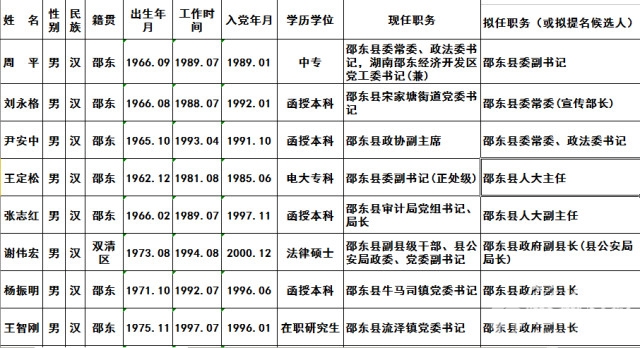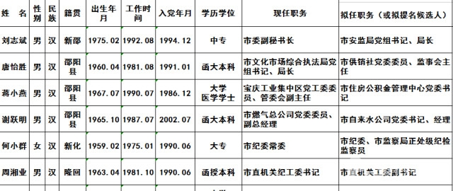 原标题:邵阳发布131名市管干部拟任职人选公示公告