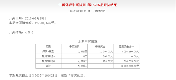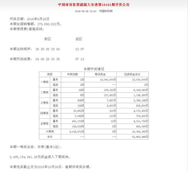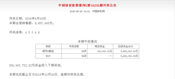 - 中国体育彩票8月28日开奖公告 (2016-08-29 08:48:24)