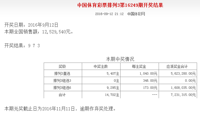 中国体育彩票9月12日开奖公告