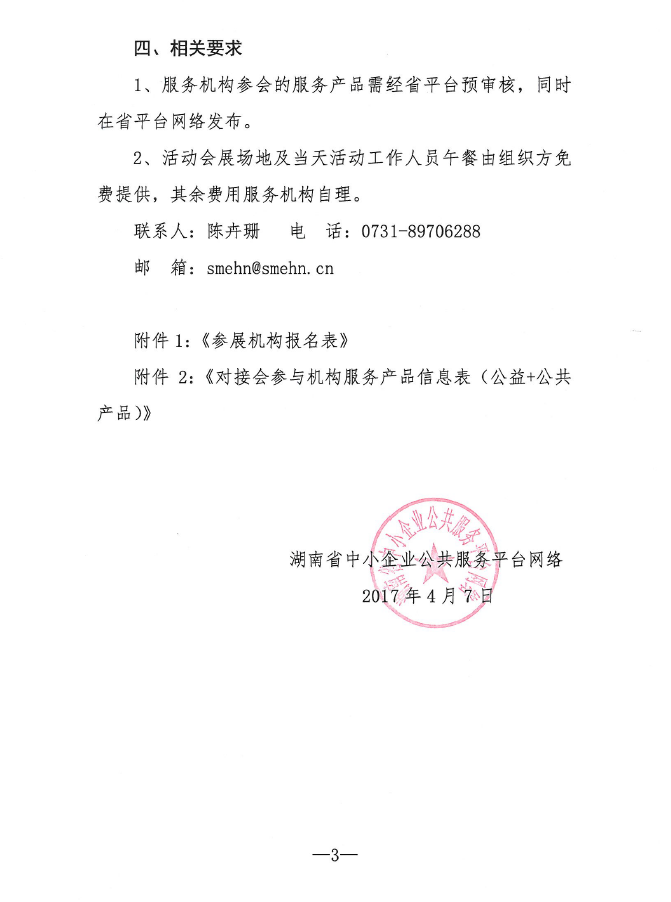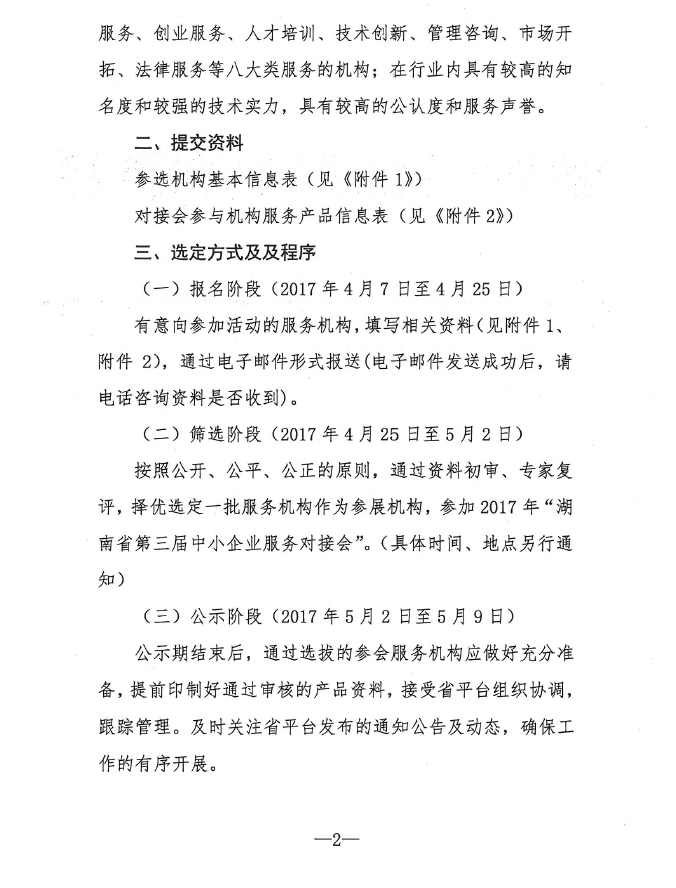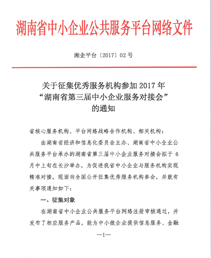 关于征集优秀服务机构参加2017年 “湖南省第三届中小企业服务对接会” 的通知
