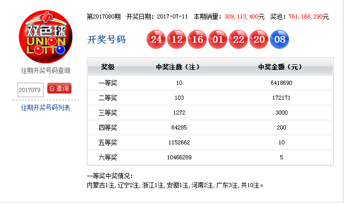 2017年7月11日湖南中国福利彩票开奖信息