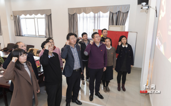 湖南省财政厅处室党员主题日活动走进红网,重温入党誓词。