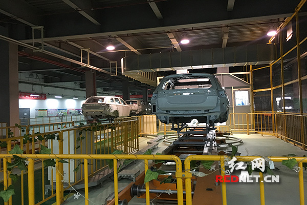 广汽三菱汽车集团的涂装车间里,汽车正在喷漆。此次抽查合乎环保要求。