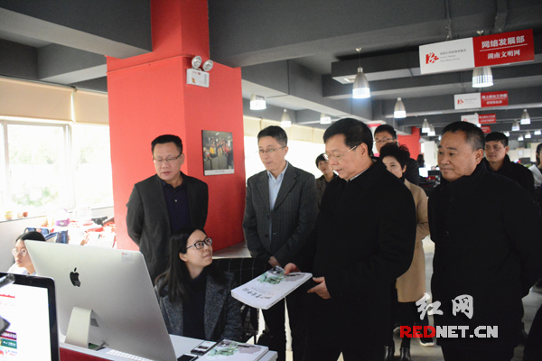在参观完红网新媒体集团的编辑中心、互动评论中心、网上群众工作部、政务中心、文化公司出版事业部、长沙分站等部门后,张严一行对红网的发展现状有了更为直观和深入的了解。他表示,影响力决定地位,红网要多策划有品牌影响力的活动,抢占新媒体发展制高点。红网作为互联网重要舆论阵地,要宣传群众、教育群众、引导群众、服务群众,要把青年群体调动起来,开展更多形式新颖的文化活动。