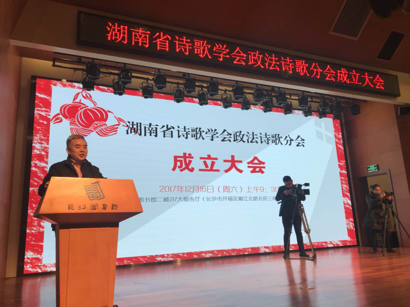 红网综合讯 据湖南省人民检察院消息 2017年12月16日上午,湖南省诗歌学会政法分会在长沙市图书馆举行成立大会,湖南的法律人拥有了一个诗意的家园,诗歌湘军又添一支法律诗歌劲旅,“法律诗派”遂在湖南宣告出世。