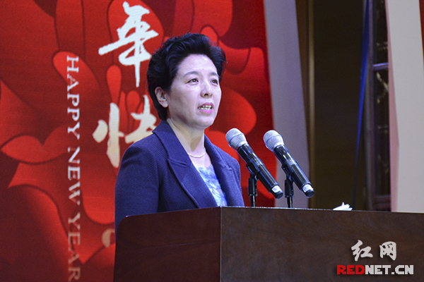 乌兰代表湖南省委、省政府向在座的各位院士、专家致以诚挚问候和崇高的敬意及新年的祝福。她说,今年来,在以习近平同志为核心的党中央坚强领导下,湖南省坚持以习近平新时代中国特色社会主义思想为指引,认真贯彻落实中央各项决策部署和省第十一次党代会精神,坚持稳中求进工作总基调,统筹推进“五位一体”总体布局,协调推进“四个全面”战略布局,大力实施创新引领开放崛起战略,推动全省经济、政治、文化、社会、生态文明建设和党的建设取得新进步。