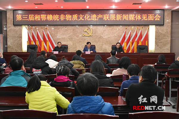 12月18日,第三届湘鄂赣皖非物质文化遗产联展新闻媒体见面会举行。23日,联展将在长沙李自健美术馆开幕。