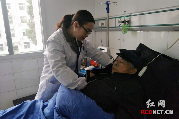 78岁的贺正坤在宁乡市双凫铺卫生院进行康复治疗。