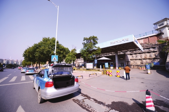 12月19日下午1点,长沙洞井路天然气加气站,几辆出租车被拦在加气站外。图/记者 杨旭