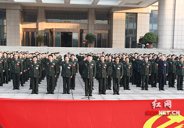 大会开始前,全体代表和省军区机关干部组织重温入党誓词。