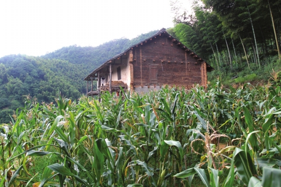 新邵县潭府乡大江村,有村民将家里房子拆了一半种上玉米。图/记者 金林