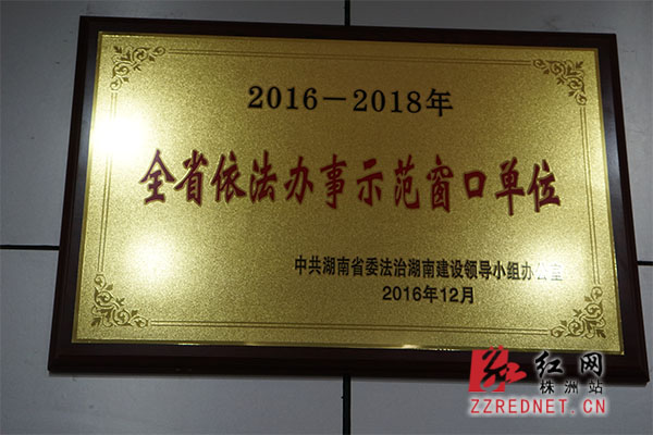 株洲市不动产登记中心荣获全省依法办事示范窗口单位。