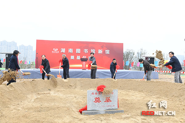 12月28日上午,湖南图书馆新馆在湖南湘江新区梅溪湖二期地块举行奠基仪式。湖南省委常委、省委宣传部部长蔡振红(左四)等领导出席奠基仪式并为湖南图书馆新馆培土奠基。