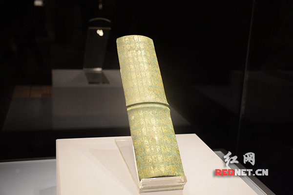 “鄂君启”错金铜车节,水陆交通运输通行证。