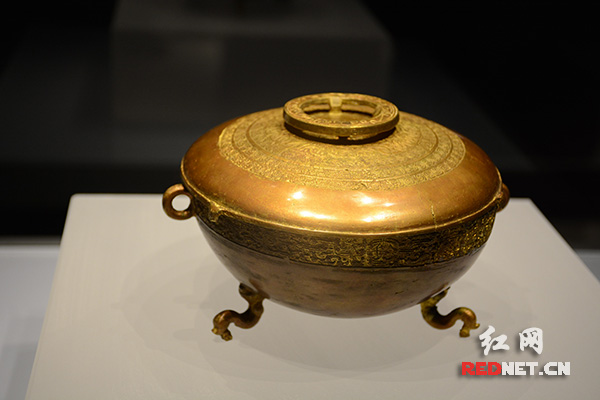金盏是目前所见最大最重的先秦金器,代表了这一时期贵金属工艺的成就与特点。其盖面和盏口铸有精细的云纹、勾连雷纹、蟠螭纹等。整器使用分铸法铸造而成,先将捉手、盖、身、足分别铸好,浇铸器身再合范成整体,与当时青铜器铸造方法相同,可见金银器制造受青铜文化影响很深。